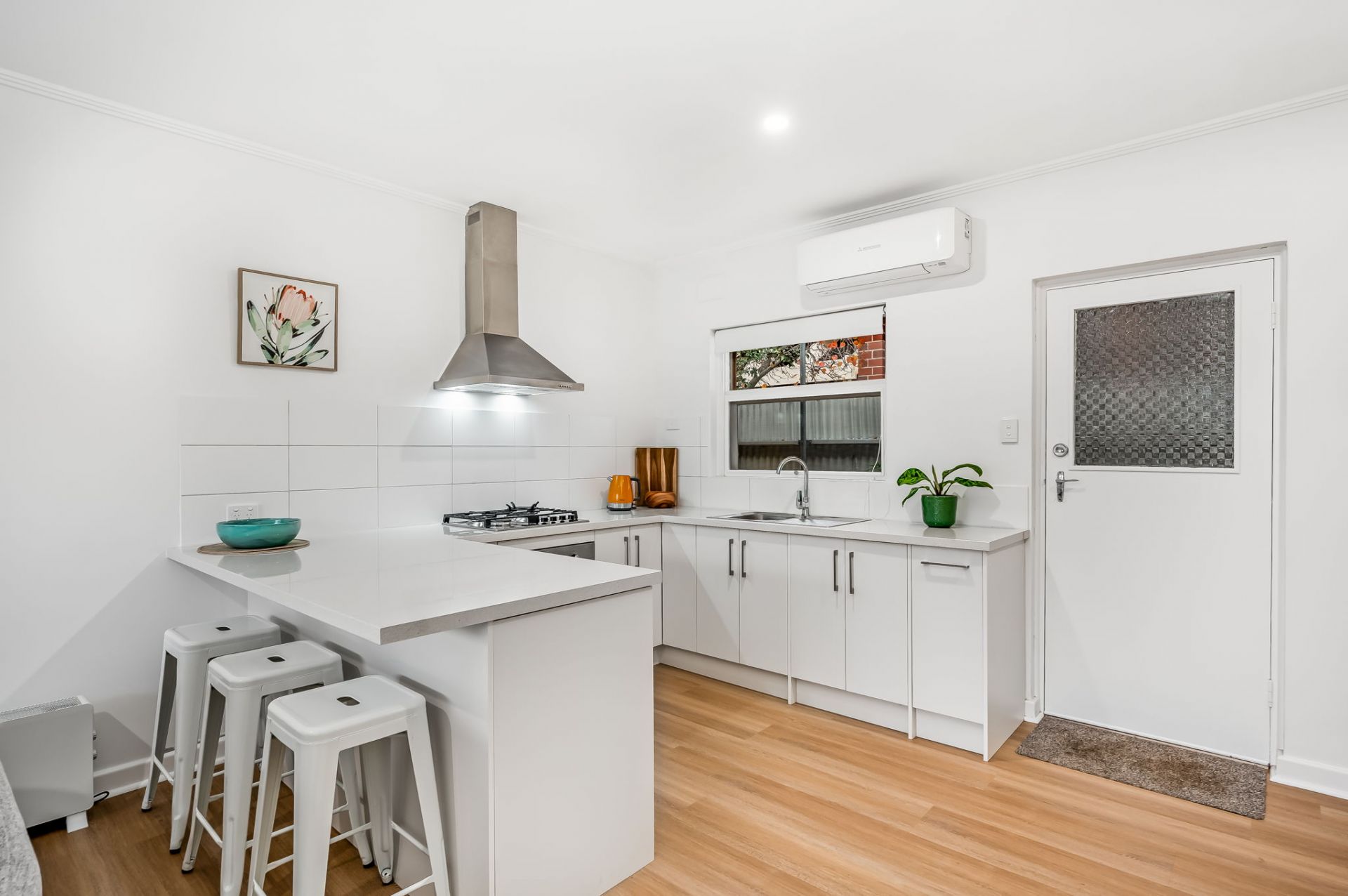 - Split system air conditioning in the open plan kitchen and living area
