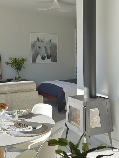 A Scandia wood burning fire (& wood) has been integrated for the cosy chilly months to provide, but is not considered to be the main heating source.