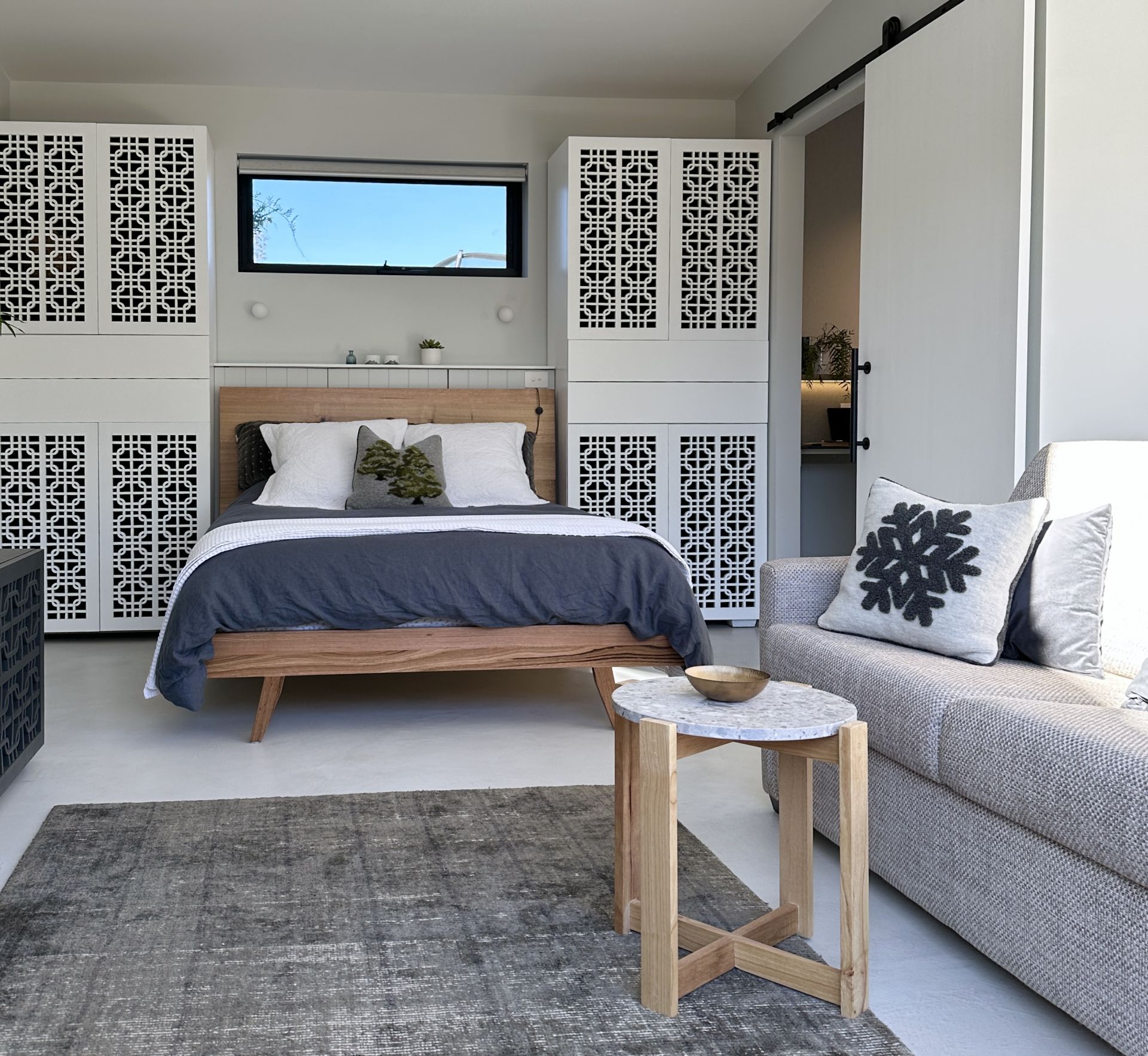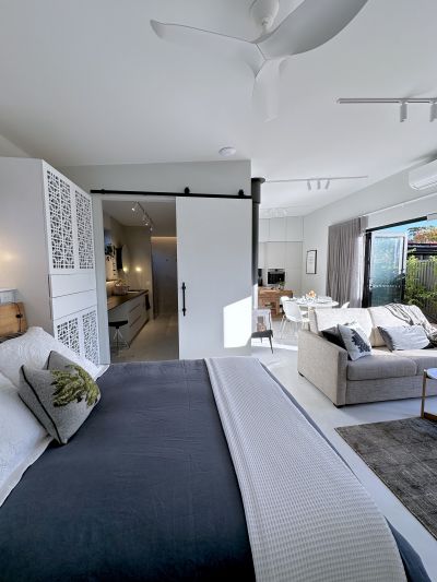 Little Forest is a bespoke purpose built luxury accomodation and our aim is to accomodate all your needs, starting with keyless secure entry and auto garage roller door with undercover secure parking, 3 steps from your private deck.