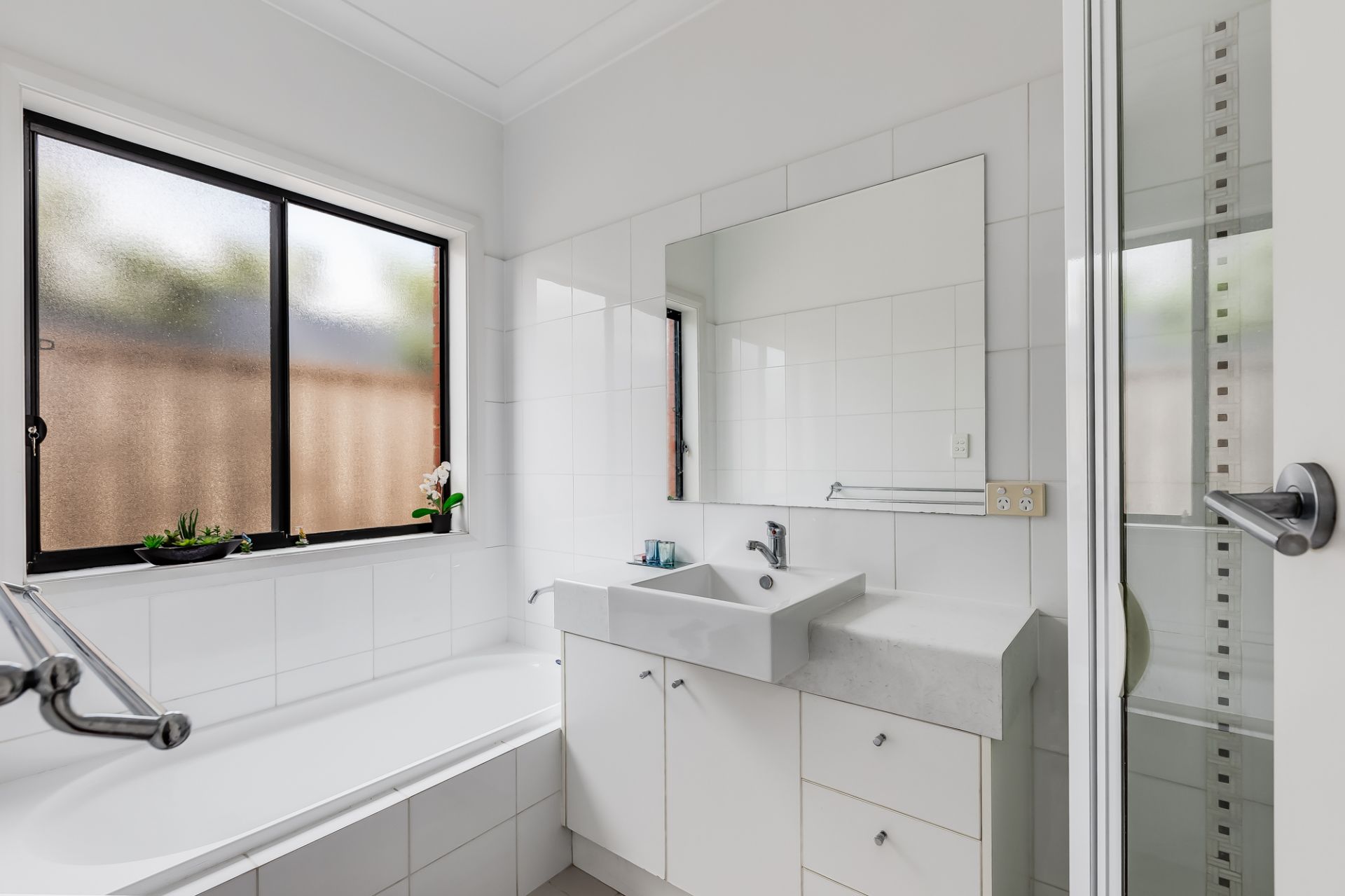 - Main bathroom includes a bath and separate show